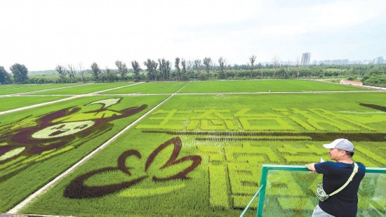 本報訊(記者 孫云柯)用大地田園作畫紙,用五彩水稻作畫筆。近日,通州區(qū)臺湖鎮(zhèn)稻小蟹藝術(shù)農(nóng)場內(nèi)的五彩稻田進(jìn)入最佳觀賞期,一幅水田阡陌、青翠宜人的生態(tài)田園畫卷徐徐展開。