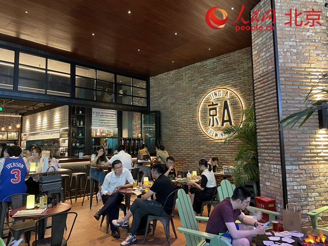 除了火鍋店,一家名為“京A Taproom”的美式精釀啤酒餐吧也熱鬧十足。美式工業(yè)風(fēng)的裝潢極具格調(diào),炸雞配啤酒的組合也頗有人氣。“這里的氛圍我很喜歡,小吃和啤酒也很對(duì)我的胃口,來這里能夠忘掉那些煩惱和壓力?!崩钆吭诠ぷ髁艘惶熘?,邀約了朋友一起來這家餐吧放松心情。
