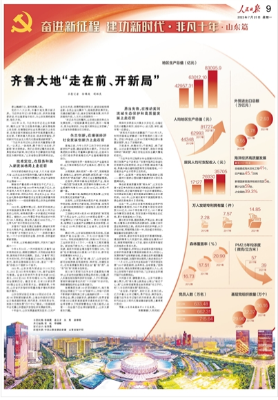 十年奮斗,山東發(fā)展基礎(chǔ)更加堅(jiān)實(shí):三次產(chǎn)業(yè)齊頭并進(jìn),供需兩端協(xié)同發(fā)力,新老動(dòng)能相得益彰,各類(lèi)企業(yè)比翼齊飛,陸海資源統(tǒng)籌開(kāi)發(fā),交通運(yùn)輸四通八達(dá),城鄉(xiāng)區(qū)域均衡發(fā)展,對(duì)外開(kāi)放提檔升級(jí),人文沃土深度耕作……