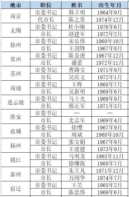 江蘇人事盤點:省委領(lǐng)導(dǎo)班子“五進(jìn)六出” 設(shè)區(qū)市主官“70后”占近半數(shù)