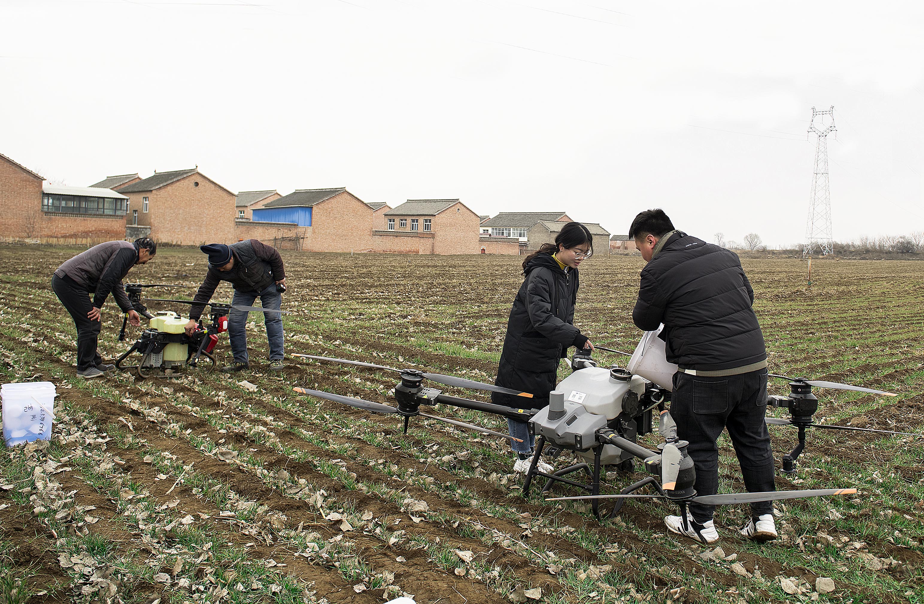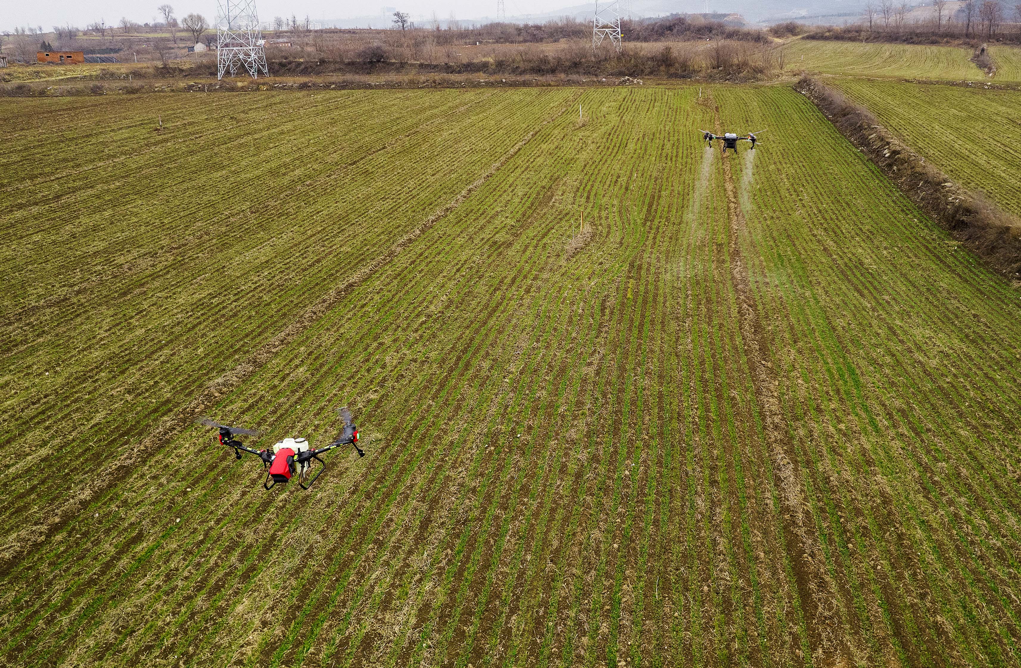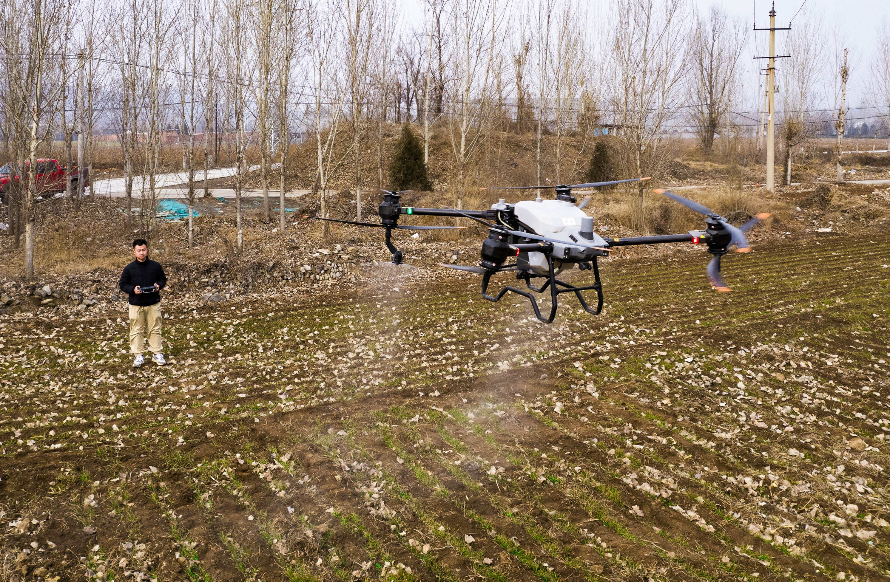 2月15日,在晉城市城區(qū)南村鎮(zhèn),操作員正熟練地遙控農(nóng)業(yè)專用無人機給麥田播撒肥料,大大提高了工作效率。