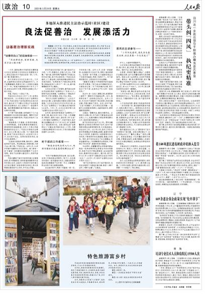 編者按:今年中央一號(hào)文件提出,加強(qiáng)鄉(xiāng)村法治教育和法律服務(wù),深入開(kāi)展“民主法治示范村(社區(qū))”創(chuàng)建。最高人民法院工作報(bào)告提出,要“積極促進(jìn)城鄉(xiāng)基層治理和平安法治鄉(xiāng)村建設(shè)”“加強(qiáng)法治宣傳教育”“引導(dǎo)全民增強(qiáng)法治觀念”。