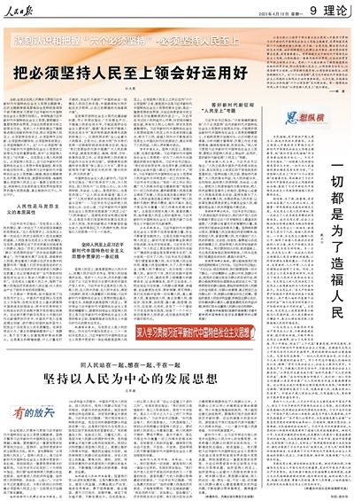 以縣處級(jí)以上領(lǐng)導(dǎo)干部為重點(diǎn)在全黨深入開展學(xué)習(xí)貫徹習(xí)近平新時(shí)代中國(guó)特色社會(huì)主義思想主題教育,是貫徹落實(shí)黨的二十大精神的重大舉措,對(duì)于統(tǒng)一全黨思想、解決黨內(nèi)存在的突出問題、始終保持黨同人民群眾血肉聯(lián)系、推動(dòng)黨和國(guó)家事業(yè)發(fā)展,具有重要意義。學(xué)深悟透習(xí)近平新時(shí)代中國(guó)特色社會(huì)主義思想,必須把握這一重要思想的世界觀、方法論和貫穿其中的立場(chǎng)觀點(diǎn)方法。黨的二十大報(bào)告提出了繼續(xù)推進(jìn)理論創(chuàng)新的科學(xué)方法,即必須堅(jiān)持人民至上、必須堅(jiān)持自信自立、必須堅(jiān)持守正創(chuàng)新、必須堅(jiān)持問題導(dǎo)向、必須堅(jiān)持系統(tǒng)觀念、必須堅(jiān)持胸懷天下。這“六個(gè)必須堅(jiān)持”,是習(xí)近平新時(shí)代中國(guó)特色社會(huì)主義思想的立場(chǎng)觀點(diǎn)方法的重要體現(xiàn)。從今天起,本報(bào)推出深刻認(rèn)識(shí)和把握“六個(gè)必須堅(jiān)持”系列理論版。第一期圍繞如何深入學(xué)習(xí)領(lǐng)會(huì)“必須堅(jiān)持人民至上”進(jìn)行闡述。
