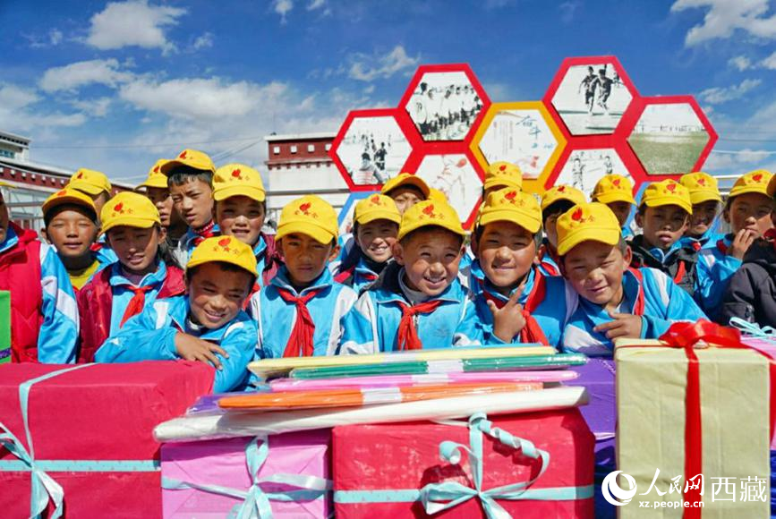 拉薩市當雄縣小學的孩子們收到愛心人士送來的禮物。人民網(wǎng) 李海霞攝