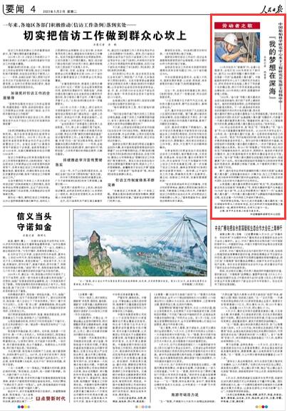 人民日報丨中國船舶科學研究中心水下工程研究開發(fā)部主任楊申申:“我的夢想在深海”