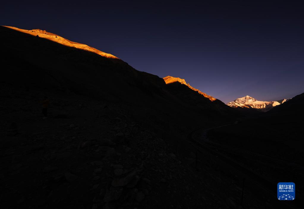 巍峨的珠穆朗瑪峰屹立于青藏高原,珠峰地區(qū)氣候復雜,景色瞬息萬變?!皣乐?從雪山奔向大海”報道組在落日時分來到珠穆朗瑪峰腳下,記錄下世界之巔的“日照金山”壯美場景。