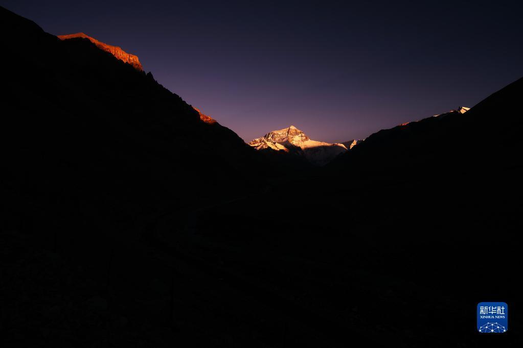 6月4日拍攝的太陽完全落山之后的珠峰。新華社記者 費茂華 攝