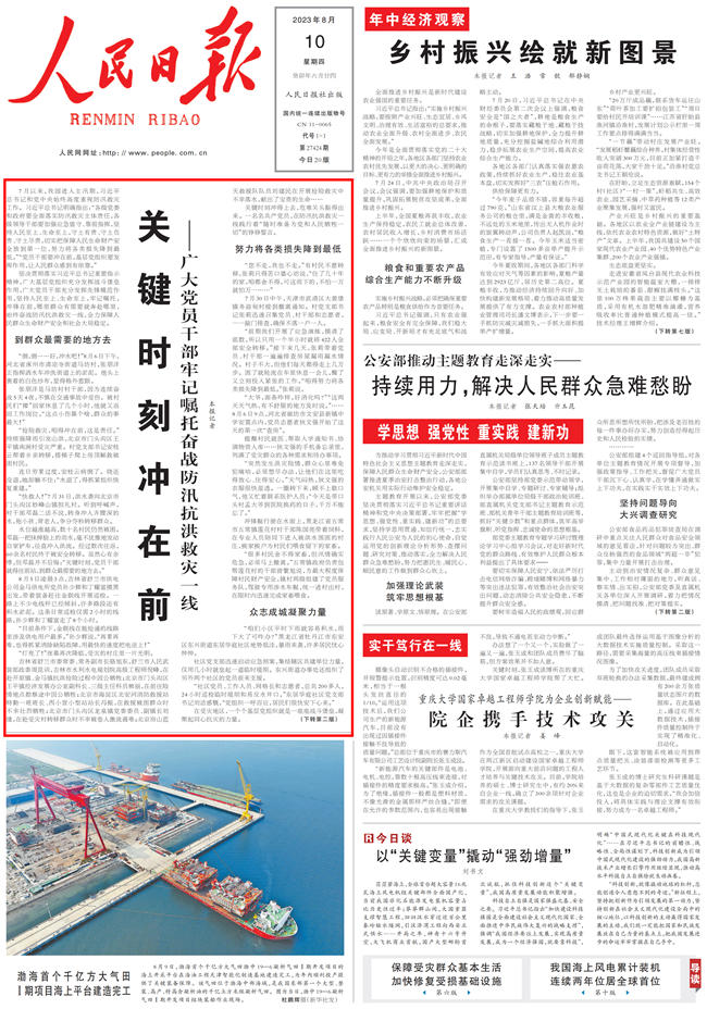 人民日報頭版頭條:廣大黨員干部牢記囑托奮戰(zhàn)防汛抗洪救災一線