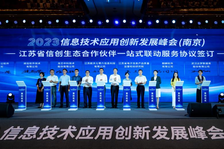 當天,以江蘇七〇六所、江蘇電子質(zhì)檢院、龍芯中科、統(tǒng)信軟件、麒麟軟件、中通服為代表的15家單位簽訂了江蘇省信創(chuàng)生態(tài)合作伙伴一站式聯(lián)動服務(wù)協(xié)議,旨在深化互惠互利、可持續(xù)發(fā)展的戰(zhàn)略合作伙伴關(guān)系,共同構(gòu)建軟硬件協(xié)同發(fā)展的信創(chuàng)生態(tài)圈。