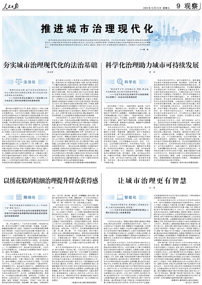 城市治理體系和治理能力現(xiàn)代化是國(guó)家治理體系和治理能力現(xiàn)代化的重要內(nèi)容。習(xí)近平總書(shū)記指出:“推進(jìn)國(guó)家治理體系和治理能力現(xiàn)代化,必須抓好城市治理體系和治理能力現(xiàn)代化?!笨倳?shū)記在上海考察時(shí)強(qiáng)調(diào):“把增進(jìn)民生福祉作為城市建設(shè)和治理的出發(fā)點(diǎn)和落腳點(diǎn)”。本期觀察版圍繞如何提高城市治理法治化、科學(xué)化、精細(xì)化、智能化水平,更好推進(jìn)城市治理現(xiàn)代化、全面踐行人民城市理念進(jìn)行探討。