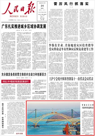 《 人民日報 》 2023年12月24日 第 01 版 版面截圖