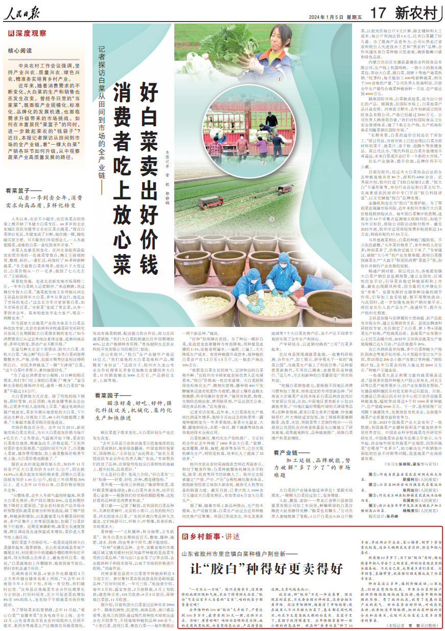 人民日報(bào)刊發(fā)“膠白”種植戶感言:讓大白菜種得好更賣得好