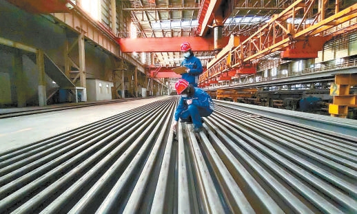 河鋼邯鋼大型軋鋼廠技術(shù)人員正在檢查將要出廠的重軌產(chǎn)品質(zhì)量。