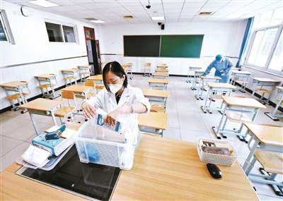 今年高考期間,作為常規(guī)考點之一的東直門中學考點將設置13個常規(guī)考場、3個備用考場。熊勁介紹,當遇到發(fā)熱考生時,考點考務人員會立即將發(fā)熱考生通過專門進口帶進考點內(nèi)的隔離室,進行健康觀察。為了防止交叉,考點為發(fā)熱考生設置專門進入考點的通道。