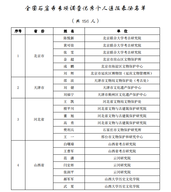 國家文物局通報表揚全國石窟寺專項調查先進單位和優(yōu)秀個人