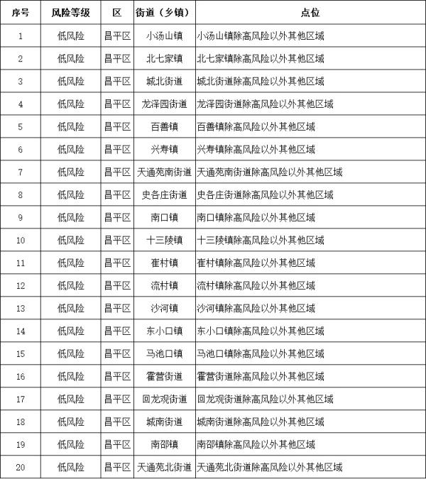 據(jù)北京市昌平區(qū)疾病預(yù)防控制中心通報(bào),截至12月4日24 時,昌平區(qū)共有高風(fēng)險區(qū)222個,低風(fēng)險區(qū)20個,詳情如下: