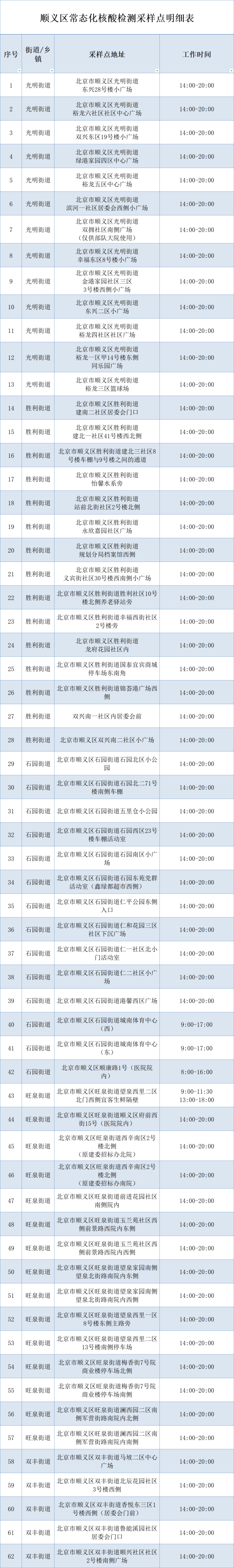為了滿足市民就近檢測的需要,順義區(qū)公布了核酸采樣點位置和開放時間。