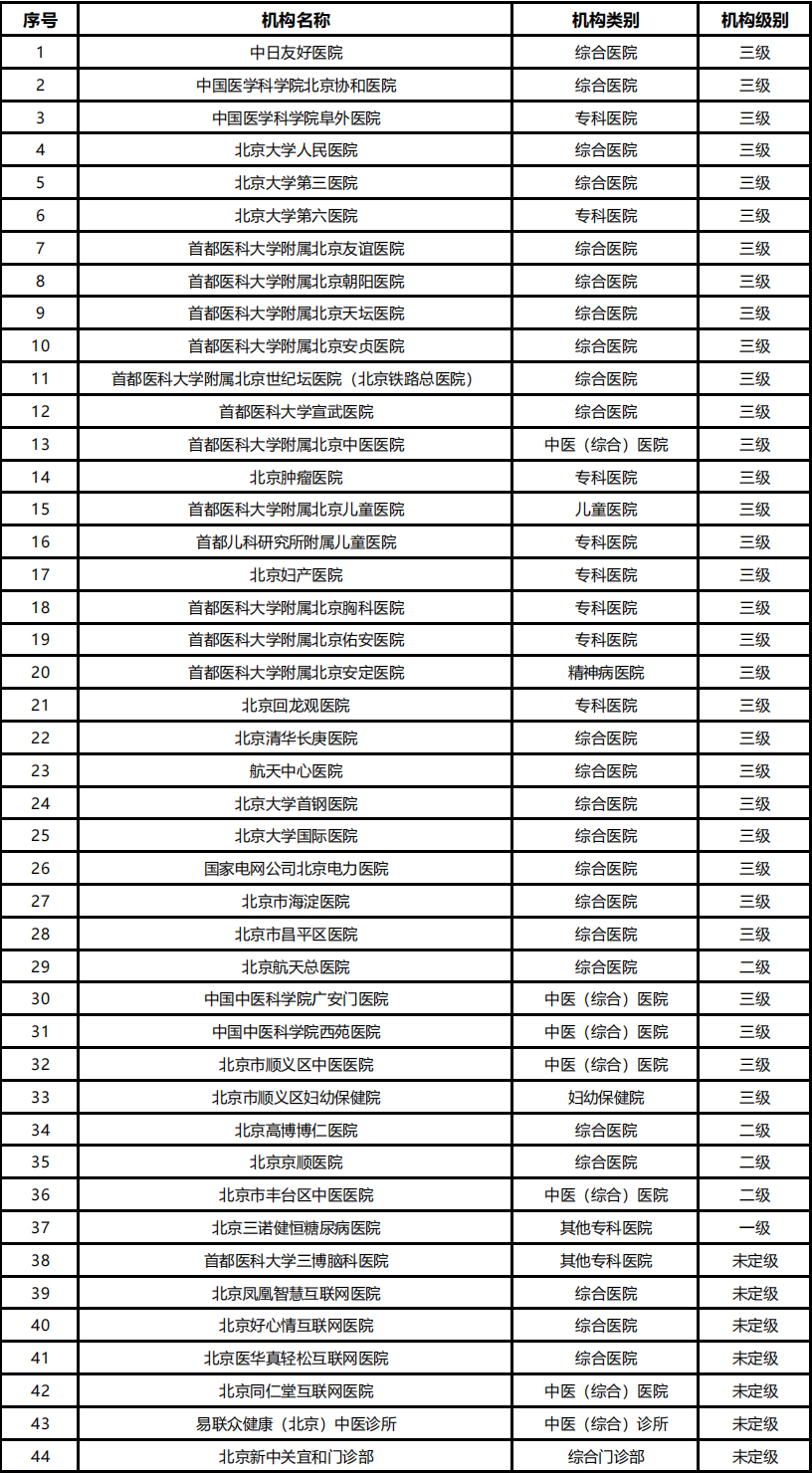 北京市公布互聯(lián)網(wǎng)醫(yī)院、開展互聯(lián)網(wǎng)診療服務(wù)醫(yī)療機(jī)構(gòu)名單