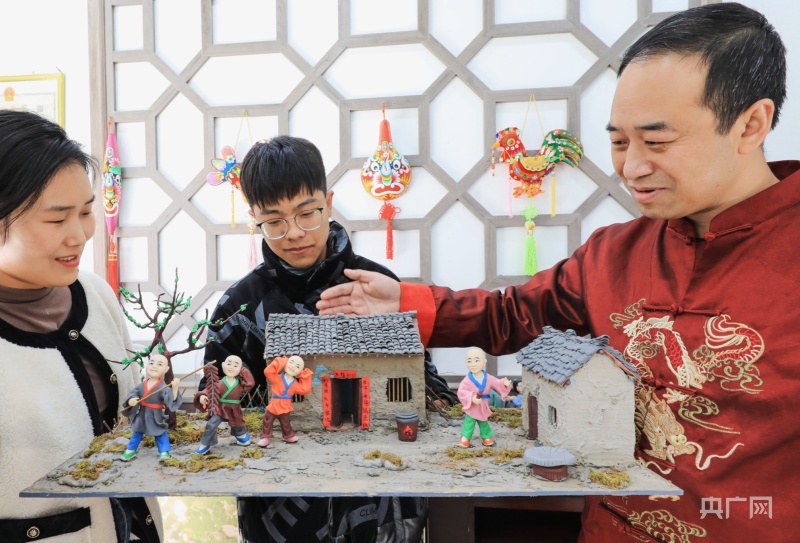 安秋平向游客介紹面塑作品《過(guò)大年》(央廣網(wǎng)發(fā) 吳庭棟 攝)