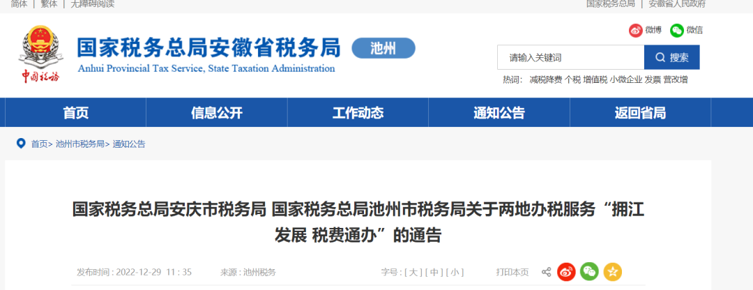 近日,為方便安徽安慶池州兩地納稅人繳費人辦理跨區(qū)域涉稅事項,落實安慶池州“一江兩岸擁江發(fā)展”規(guī)劃,進一步優(yōu)化稅收營商環(huán)境。國家稅務(wù)總局安慶市稅務(wù)局、國家稅務(wù)總局池州市稅務(wù)局發(fā)布《關(guān)于兩地辦稅服務(wù)“擁江發(fā)展稅費通辦”的通告》。