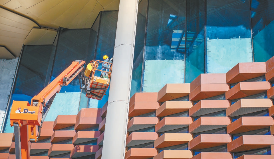 城市副中心圖書館項目周邊,首都博物館東館、大劇院項目同樣按下了建設(shè)“加速鍵”。僅首都博物館東館項目,目前就有600余人堅守崗位,在確保疫情防控安全的前提下盡最大努力確保工程進(jìn)度。目前,首都博物館東館屋面幕墻安裝基本完成,正在進(jìn)行室內(nèi)吊頂鋁拉網(wǎng)收尾,室內(nèi)普通裝修完成60%以上,精裝工程完成45%以上,機(jī)電安裝工程完成75%以上。
