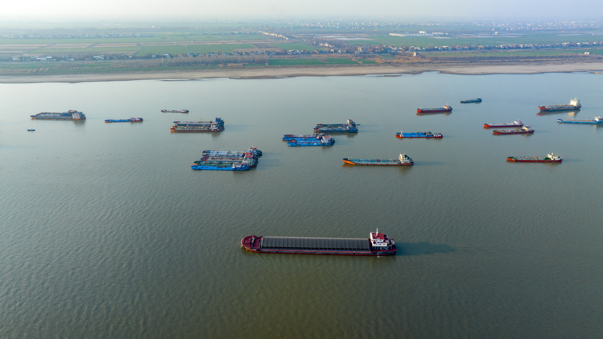 長江航道江西省九江市湖口縣水域船舶往來穿梭,水運(yùn)一派繁忙(央廣網(wǎng)發(fā) 余杰 攝)