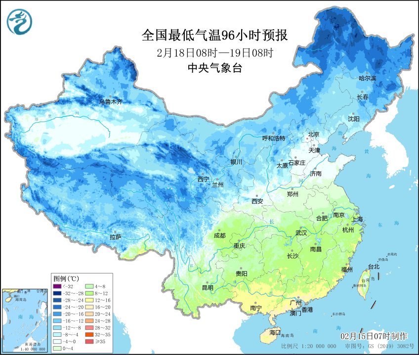 全國(guó)最低氣溫96小時(shí)預(yù)報(bào)圖(圖片來(lái)源:中央氣象臺(tái))