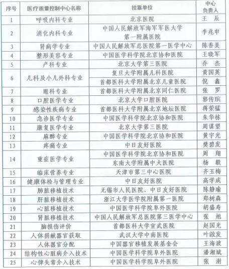 國家級醫(yī)療質量控制中心名單公布,北京15家醫(yī)院入選