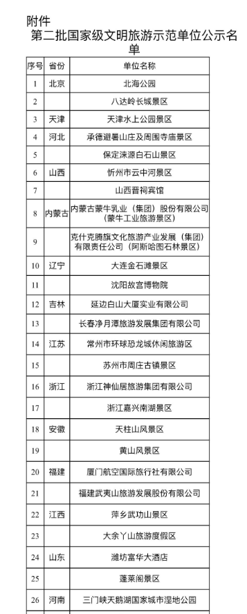 第二批國(guó)家級(jí)文明旅游示范單位名單公示 北海公園等66家單位上榜