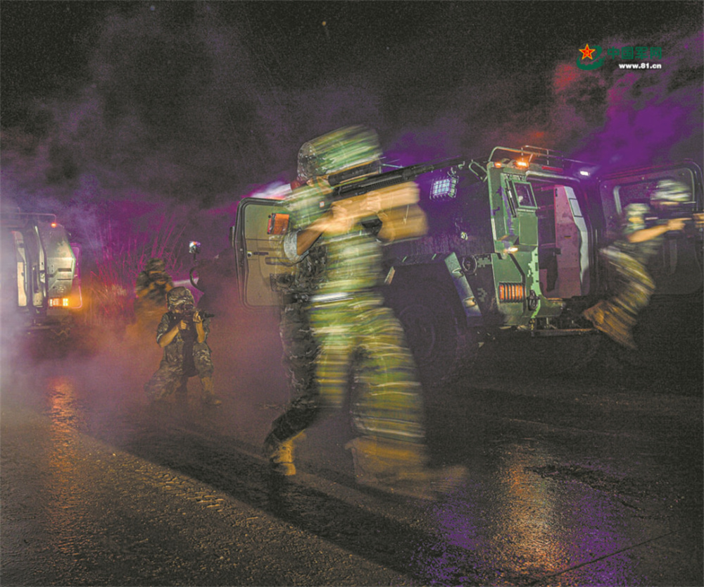武警重慶總隊(duì)機(jī)動(dòng)支隊(duì)開展夜間突擊訓(xùn)練。李哲 攝