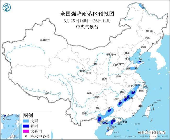 中央氣象臺(tái)6月25日10時(shí)繼續(xù)發(fā)布暴雨黃色預(yù)警: