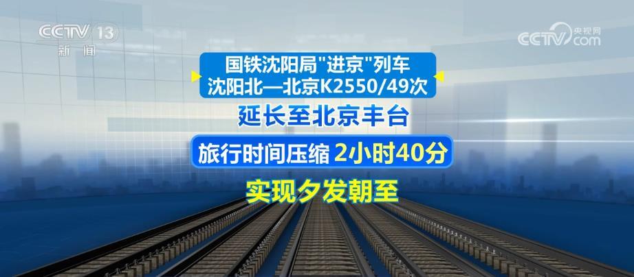 此次調(diào)圖,國鐵沈陽局“進(jìn)京”列車沈陽北—北京K2550/49次延長至北京豐臺,旅行時間壓縮2小時40分,實(shí)現(xiàn)夕發(fā)朝至。