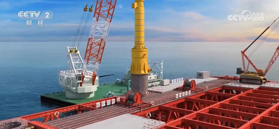 為了給大功率鉆機(jī)搭建一個(gè)穩(wěn)定的施工平臺(tái),2023年年初,一個(gè)重達(dá)7600噸的自浮式鉆孔平臺(tái)抵達(dá)5號(hào)墩位。這個(gè)全新研發(fā)的鉆孔平臺(tái),平面尺寸超過13000平方米,相當(dāng)于31個(gè)標(biāo)準(zhǔn)籃球場大小,定位誤差卻控制在30厘米以內(nèi),角度偏差小于1度。這在世界橋梁建設(shè)中還是首次嘗試。