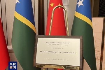 7月11日中午,所羅門(mén)群島駐華使館在北京舉行開(kāi)館儀式。正在中國(guó)訪問(wèn)的所羅門(mén)群島總理梅納西·索加瓦雷出席儀式。