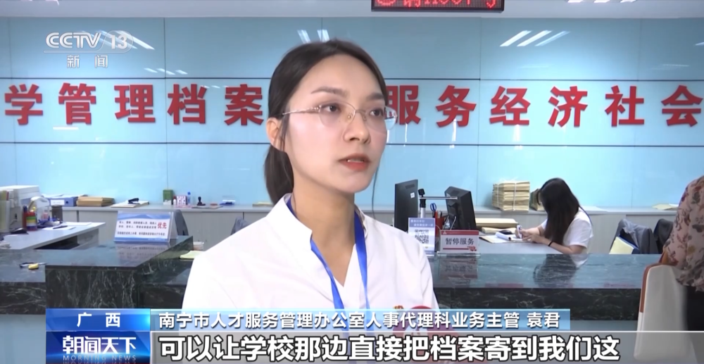 南寧市人才服務(wù)管理辦公室人事代理科業(yè)務(wù)主管 袁君:可以讓學(xué)校那邊直接把檔案寄到我們這,我們進(jìn)行一個免費(fèi)的托管,不需要學(xué)生本人再提供任何的工作材料到現(xiàn)場或者是在網(wǎng)上再辦理任何檔案接收手續(xù)。