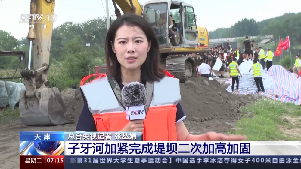 總臺(tái)央視記者 張叢婧:可以看到,現(xiàn)場的500多名搶險(xiǎn)救援人員正在對這段大堤進(jìn)行持續(xù)加高加固作業(yè)。筑牢防洪堤壩,保障洪水繞城而走,安全有序入海。