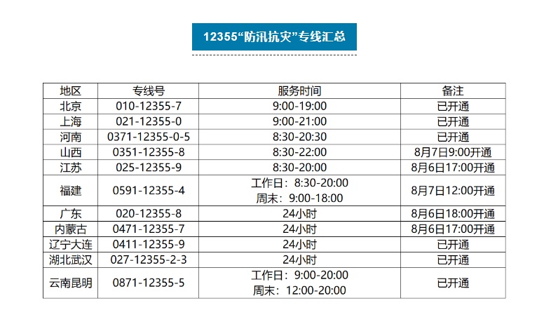 12355“防汛抗災(zāi)”專(zhuān)線匯總