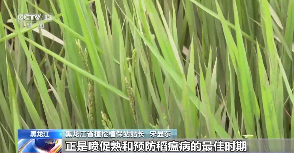 黑龍江省植檢植保站站長(zhǎng) 宋顯東:像這塊地迫切需要促熟了,正是噴促熟和預(yù)防稻瘟病的最佳時(shí)期。上面這幾個(gè)功能葉還相當(dāng)不錯(cuò),因?yàn)樗井a(chǎn)量形成最重要的還是上面那三四個(gè)葉。