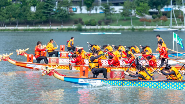 據(jù)了解,早在2021年,南京市體育集團(tuán)與江寧開發(fā)區(qū)共同打造的國家級水上運動項目——帆船訓(xùn)練基地落戶九龍湖國際企業(yè)總部園。今年端午節(jié)當(dāng)天,第二十屆南京市外商投資企業(yè)龍舟邀請賽在江寧百家湖拉開戰(zhàn)幕,在寧外企揚子巴斯夫、菲尼克斯電氣、西門子數(shù)控、舍弗勒等16支參賽隊伍激情揮槳、奮勇爭先。
