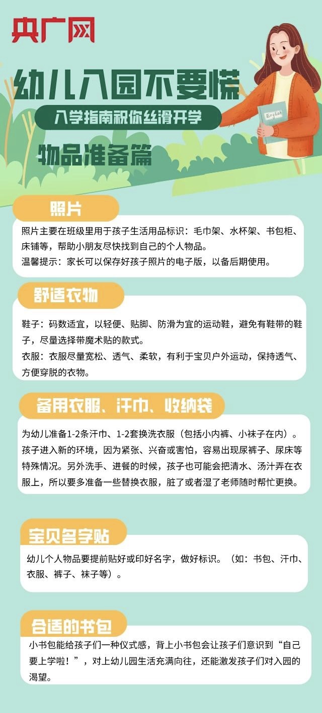 央廣網北京8月27日消息 幼兒園是人生的第一所學校,在這里,孩子們將開啟真正的學習生活和社會生活。可以說,這一階段對于孩子的性格塑造和習慣養(yǎng)成都有著十分重要的影響。那么幼兒入園前,新手爸媽應該做好哪些準備工作呢?別慌,這份入學指南請收藏!