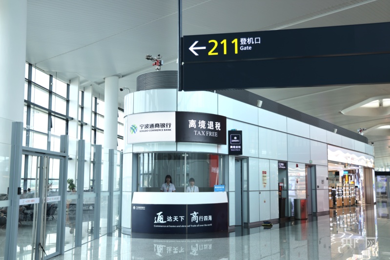 根據(jù)實(shí)施方案,選擇寧波櫟社國際機(jī)場口岸實(shí)施離境退稅,寧波海關(guān)在機(jī)場T2航站樓出境大廳設(shè)置海關(guān)驗(yàn)核點(diǎn)。選定寧波通商銀行作為退稅代理機(jī)構(gòu),目前已在寧波櫟社國際機(jī)場T2航站樓離境口岸隔離區(qū)內(nèi)設(shè)置專用退稅場所。