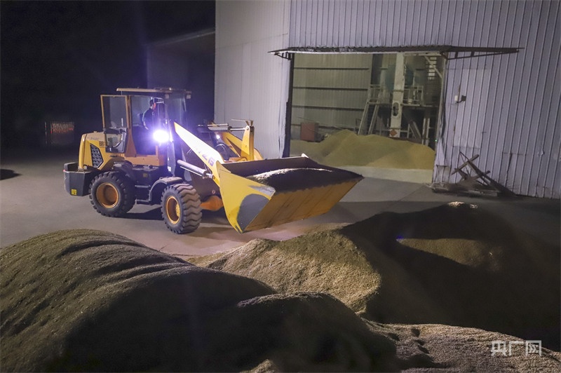 加班加點烘干稻谷(央廣網發(fā) 沈海濱 攝)