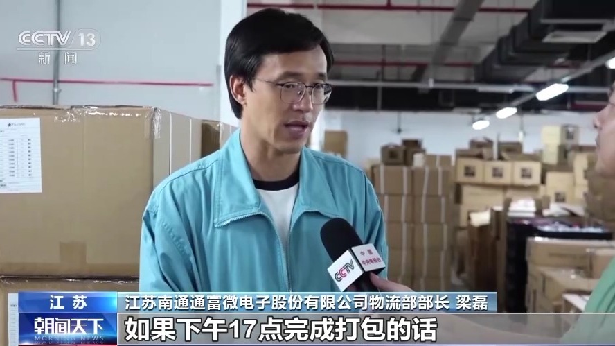 江蘇南通通富微電子股份有限公司物流部部長(zhǎng) 梁磊:我們當(dāng)天的出貨,如果17點(diǎn)完成打包的話(huà),當(dāng)天晚上12點(diǎn)前,基本就能到達(dá)深圳??蛻?hù)的一些特急件,我們甚至凌晨就能派送到位。