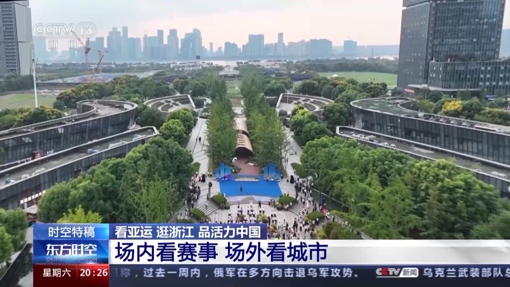 總臺記者 孫銳:這里是杭州市蕭山區(qū)的錢江世紀公園,每到傍晚這里就會格外熱鬧,大家圍著亞運觀賽空間看比賽,或到附近的亞洲花卉主題展園賞花;又或者到錢塘江邊的綠道上吹吹江風,感受秋意。