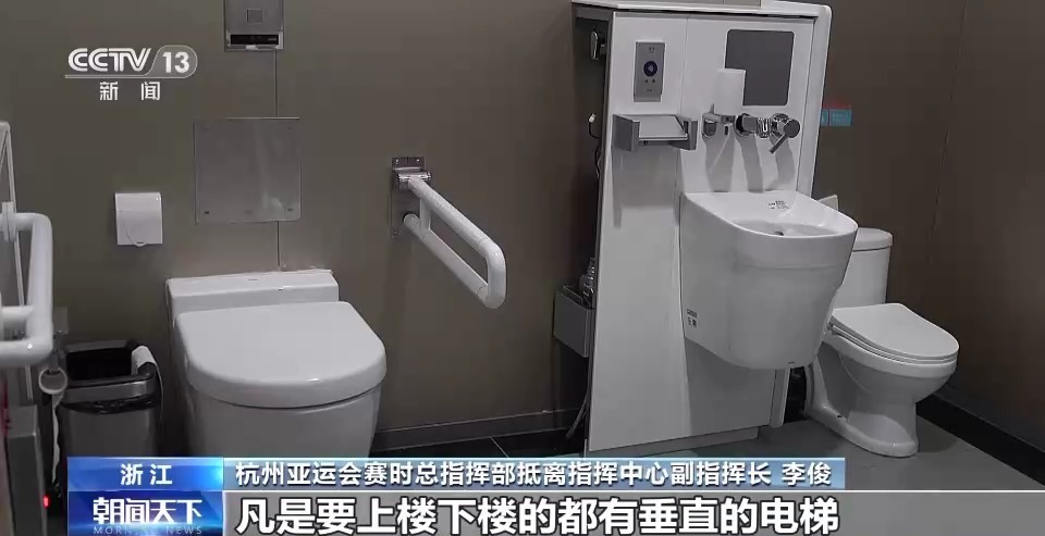 杭州亞組委場(chǎng)館建設(shè)部場(chǎng)館無障礙建設(shè)主管 張茜:臨時(shí)的無障礙設(shè)施是在亞運(yùn)會(huì)之前已經(jīng)預(yù)制并且演練完成的,在這段時(shí)間會(huì)把它重新拿出來安裝上去。主要要轉(zhuǎn)換的無障礙設(shè)施包括無障礙的公交車上下平臺(tái),還有輪椅的無障礙看臺(tái),包括無障礙淋浴間。