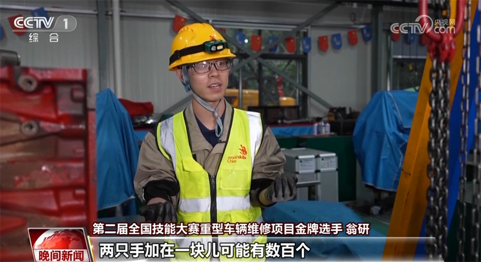 第二屆全國(guó)技能大賽重型車輛維修項(xiàng)目金牌選手 翁研:我們這個(gè)訓(xùn)練講究的就是熟練度,每天都在練。我記得有一次練得很累,在車上睡著了,一覺(jué)醒來(lái),手上面都是蚊子包,兩只手加在一塊兒可能有數(shù)百個(gè)。