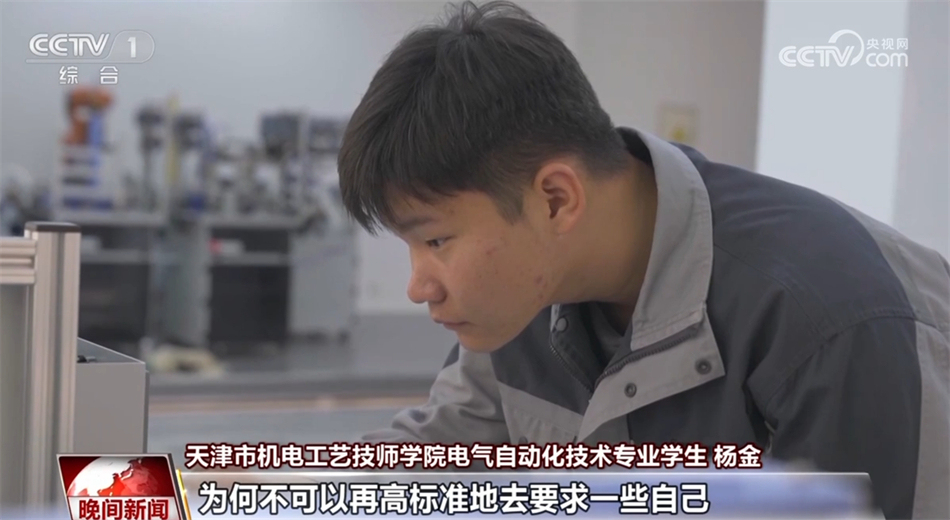 天津市機(jī)電工藝技師學(xué)院電氣自動(dòng)化技術(shù)專業(yè)學(xué)生 楊金:讓每一顆螺絲、每一個(gè)部件都能發(fā)揮出它最大的作用,這就是我的需要和目標(biāo)了。(未來(lái)希望)自主去研發(fā)需要使用的機(jī)器,可以去創(chuàng)造(更多)屬于咱們(國(guó)人)自己的(電氣化)產(chǎn)品。