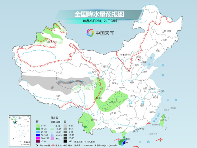 中央氣象臺預(yù)計,今天,受“三巴”殘余環(huán)流和冷空氣持續(xù)影響,華南局地仍有強(qiáng)風(fēng)雨天氣,其他大部地區(qū)將以晴或多云為主。具體來看,新疆北疆北部、西藏東部和北部、青海南部等地部分地區(qū)有小到中雪或雨夾雪。廣西東南部、雷州半島、海南島等地有中到大雨,其中,海南島東部等地部分地區(qū)有暴雨或大暴雨(100~180毫米)。