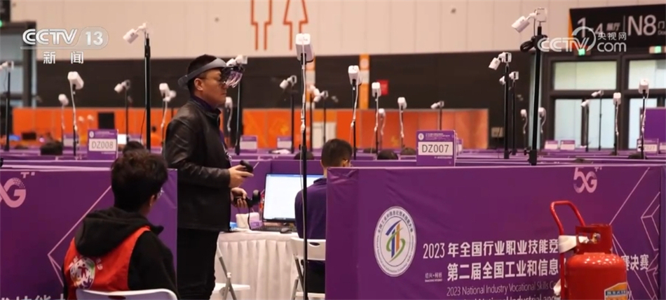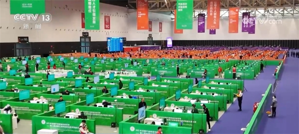 總臺(tái)央視記者 張叢婧:我身旁這一個(gè)個(gè)小隔間就是選手的比賽工位,可以看到有不同顏色,代表著四個(gè)賽項(xiàng),分別是工業(yè)互聯(lián)網(wǎng)安全、汽車芯片開發(fā)應(yīng)用、工業(yè)大數(shù)據(jù)算法、5G+虛擬現(xiàn)實(shí)開發(fā)應(yīng)用。除了工業(yè)大數(shù)據(jù)算法這一項(xiàng),其他三個(gè)賽項(xiàng)都是今年新設(shè)立的。