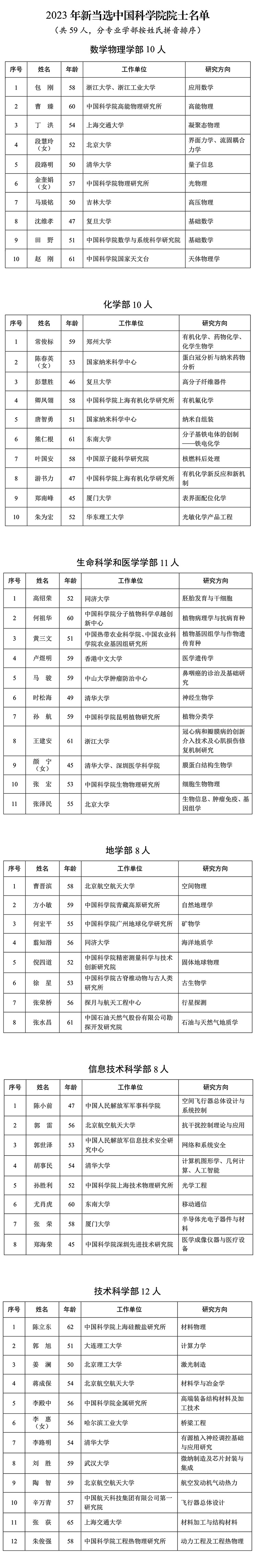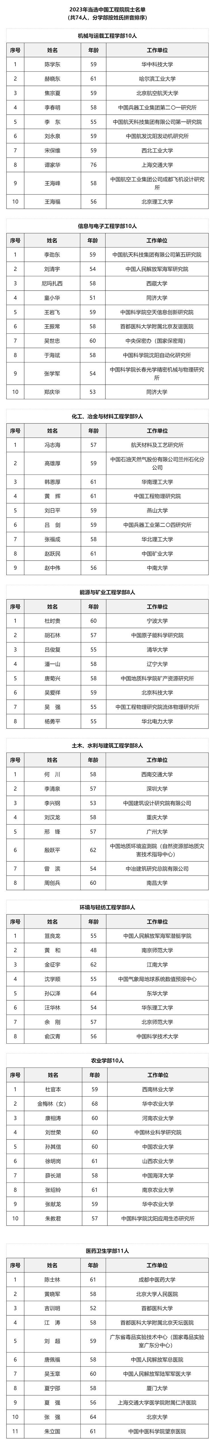 央廣網(wǎng)北京11月23日消息(記者 郭彥偉)11月22日,中國科學院、中國工程院公布2023年院士增選結果。2023年中國科學院選舉產生了59名中國科學院院士,中國工程院2023年院士增選共選舉產生74位中國工程院院士。